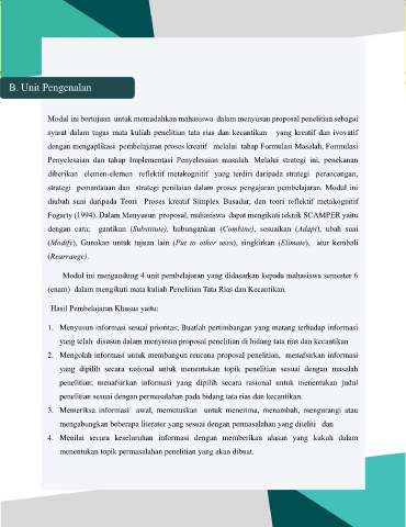 Modul ini mengandung 4 unit pembelajaran yang didasarkan kepada mahasiswa semester 6