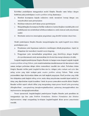 Kelebihan pembelajaran menggunakan model Simplex Basadur sama halnya dengan
