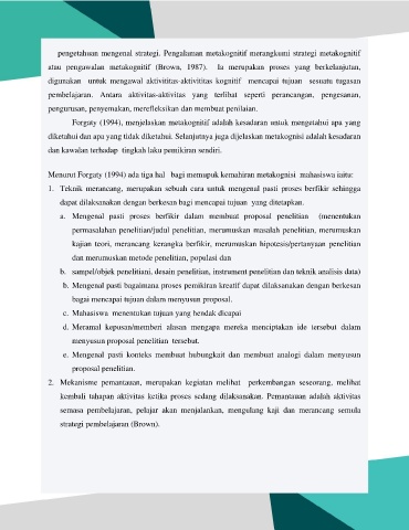 Forgaty (1994), menjelaskan metakognitif adalah kesadaran untuk mengetahui apa yang