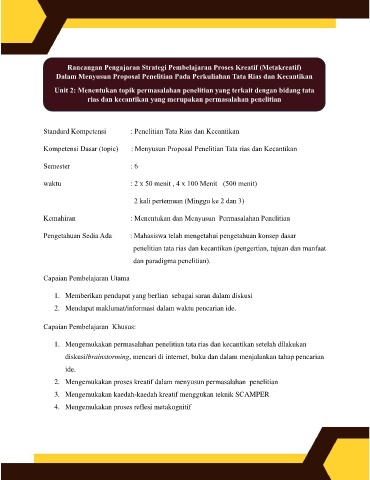 1.  Mengemukakan permasalahan penelitian tata rias dan kecantikan setelah dilakukan