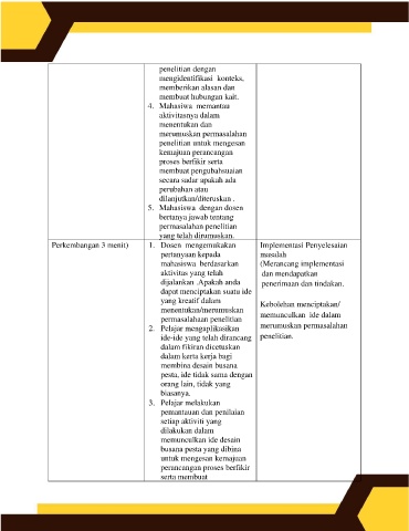 Perkembangan 3 menit) 1. Dosen mengemukakan Implementasi Penyelesaian