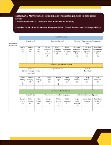 Penilaian Produk kreativiti dalam Menyusun bab 1 ( Model Besemer and Treffinger (1981))