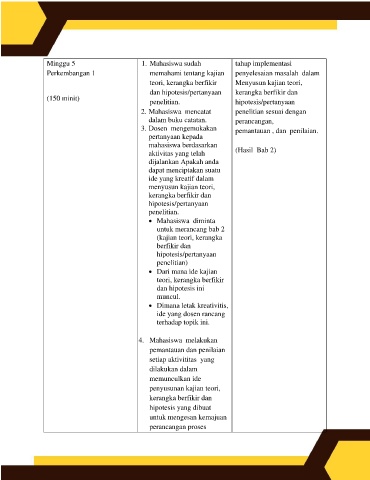 Minggu 5                       1. Mahasiswa sudah             tahap implementasi