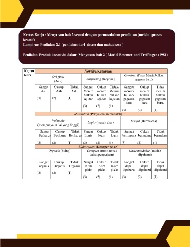 Penilaian Produk kreativiti dalam Menyusun bab 2 ( Model Besemer and Treffinger (1981)