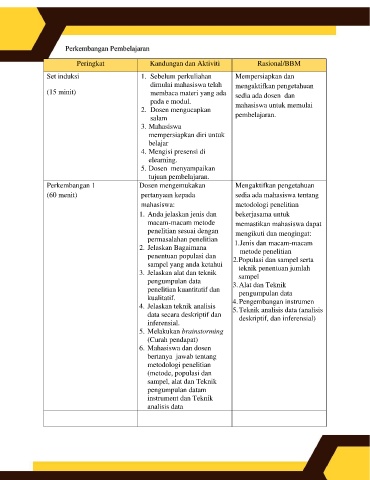 Perkembangan 1 Dosen mengemukakan Mengaktifkan pengetahuan