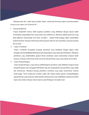 Menurut para ahli, selain tujuan praktis diatas, masih ada beberapa tujuan penelitian praktis