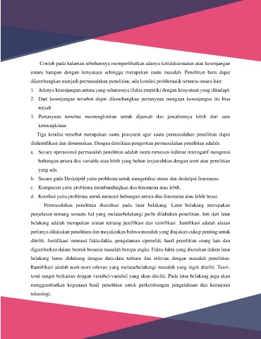 Tiga kondisi tersebut merupakan suatu prasyarat agar suatu permasalahan penelitian dapat
