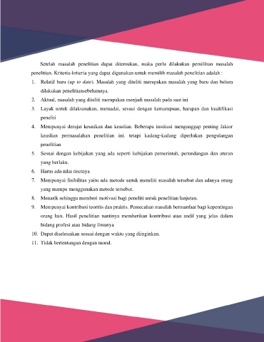 penelitian. Kriteria-kriteria yang dapat digunakan untuk memilih masalah penelitian adalah :