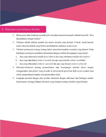 1.  Menuyusun latar belakang masalah perlu diuraikan masalah menjadi indikatif masalah, ”bisa