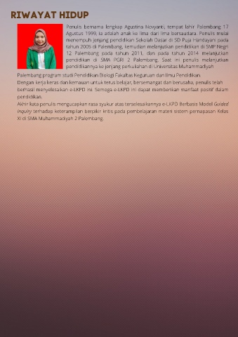 pendidikan di SMA PGRI 2 Palembang. Saat ini penulis melanjutkan