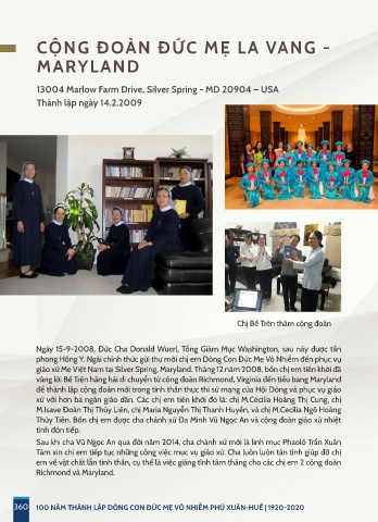 giáo xứ Mẹ Việt Nam tại Silver Spring, Maryland. Tháng 12 năm 2008, bốn chị em tiên khởi đã