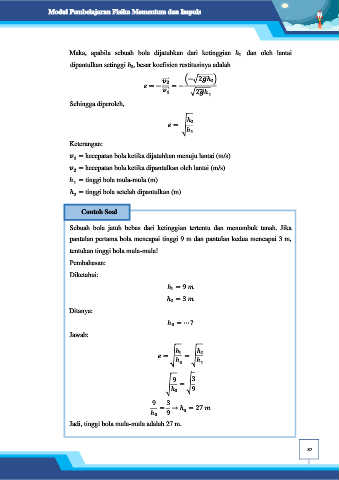 Maka, apabila sebuah bola dijatuhkan dari ketinggian ℎ dan oleh lantai