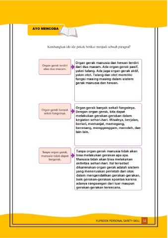 AYO MENCOBA Kembangkan ide-ide pokok berikut menjadi sebuah paragraf! FLIPBOOK PERSONAL SAFETY SKILL 12