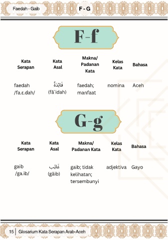 faedah ةَﺪِﺋﺎﻓ faedah; nomina Aceh