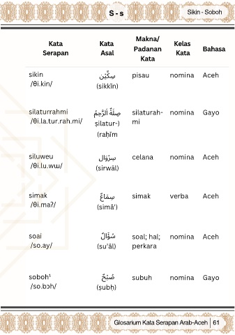 sikin ﻦﻴ ﱢ ﻜ ِ ﺳ pisau nomina Aceh