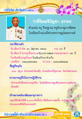 วัน เดือน ปี (บรรจุครั้งแรก) ๑ มิถุนายน ๒๕๒๗ รวมอายุราชการ ๓๖ ปี