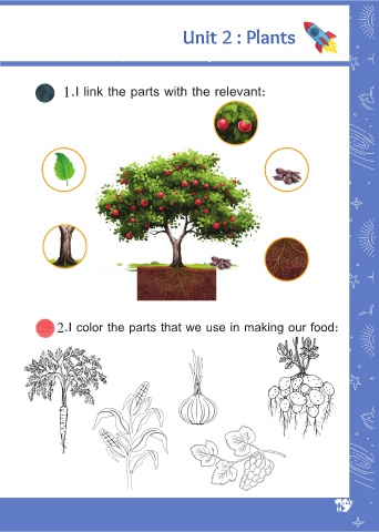 1.I link the parts with the relevant: 2.I color the parts that we use in making our food: 19