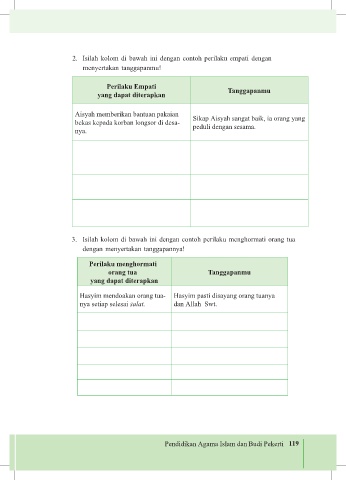 2. Isilah kolom di bawah ini dengan contoh perilaku empati dengan