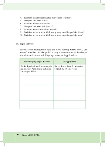 Setelah kalian mempelajari ayat dan hadis tentang ikhlas, sabar, dan