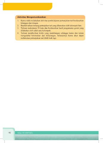 2. Buatlah tulisan tentang pertunjukan tari yang dibawakan oleh kelompok lain.