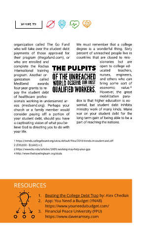 from donor-funded work with reli- ate in country. pay the student debt However, the great