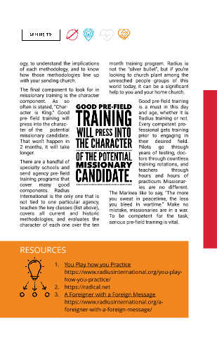 that the new church has means of growing, and spreading the pre- field training will Radius training or not.