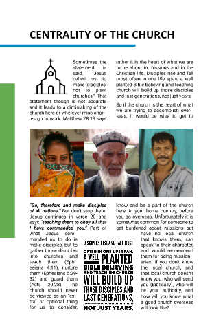 of all nations.? But don? stop there. here, in your home country, before sions. Spend time getting to know Before they leave for the field, good