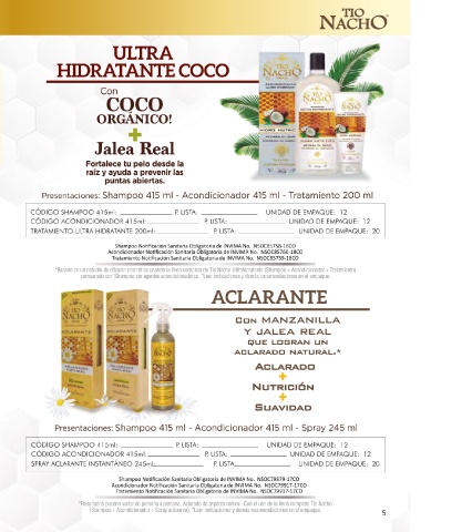 Acondicionador Notificación Sanitaria Obligatoria de INVIMA No. NSOC13646-16EC Shampoo Notificación Sanitaria Obligatoria de INVIMA No. NSOC79879-17CO