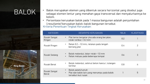 • Persentase kerusakan balok pada 1 massa bangunan adalah penjumlahan