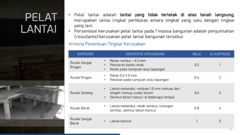LANTAI • Persentase kerusakan pelat lantai pada 1 massa bangunan adalah penjumlahan
