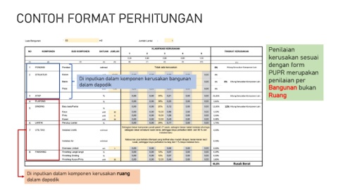 Di inputkan dalam komponen kerusakan bangunan penilaian per