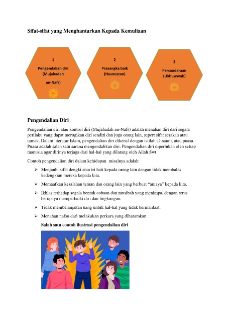 Contoh pengendalian diri dalam kehidupan misalnya adalah: