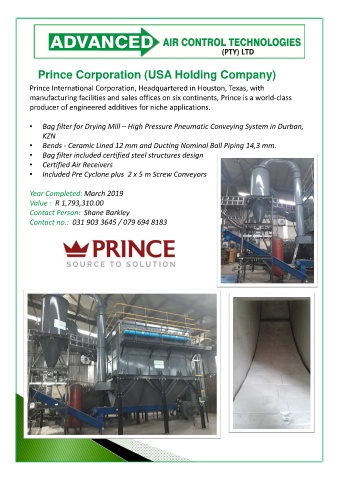 • Bag filter for Drying Mill – High Pressure Pneumatic Conveying System in Durban,