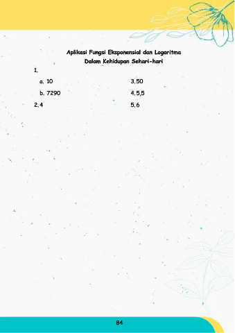 Aplikasi Fungsi Eksponensial dan Logaritma Dalam Kehidupan Sehari-hari 1. a. 10 3. 50 b. 7290 4. 5,5 2. 4 5. 6 84