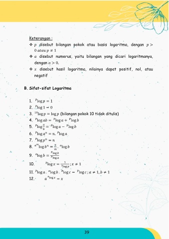 3.   10 log    = log    (bilangan pokok 10 tidak ditulis)