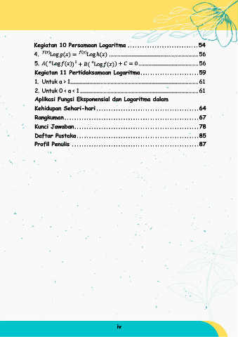 Kegiatan 10 Persamaan Logaritma ............................. 54