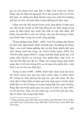 (1) Năng suất lúa: năm 2001 đạt 132,53 tạ/ha; năm 2002 đạt 134,31 tạ/ha;