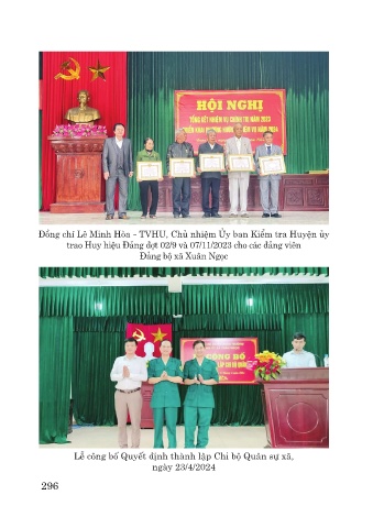 Đồng chí Lê Minh Hòa - TVHU, Chủ nhiệm Ủy ban Kiểm tra Huyện ủy trao Huy hiệu Đảng đợt 02/9 và 07/11/2023 cho các đảng viên Đảng bộ xã Xuân Ngọc Lễ công bố Quyết định thành lập Chi bộ Quân sự xã, ngày 23/4/2024 296