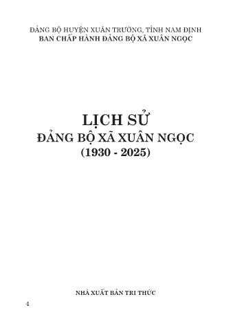 ĐẢNG BỘ HUYỆN XUÂN TRƯỜNG, TỈNH NAM ĐỊNH BAN CHẤP HÀNH ĐẢNG BỘ XÃ XUÂN NGỌC LỊCH SỬ ĐẢNG BỘ XÃ XUÂN NGỌC (1930 - 2025) NHÀ XUẤT BẢN TRI THỨC 4