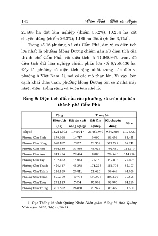 Bảng 9: Diện tích đất của các phường, xã trên địa bàn