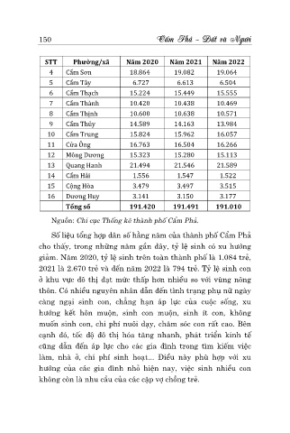 Số liệu tổng hợp dân số hằng năm của thành phố Cẩm Phả