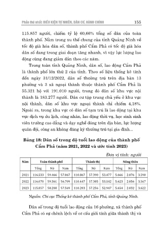 Bảng 18: Dân số trong độ tuổi lao động của thành phố