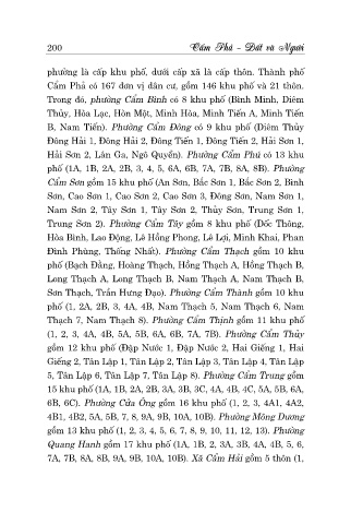 Cẩm Phả có 167 đơn vị dân cư, gồm 146 khu phố và 21 thôn.
