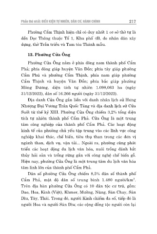 Suốt từ thế kỷ XIII. Phường Cửa Ông chiếm 3,2% tổng diện