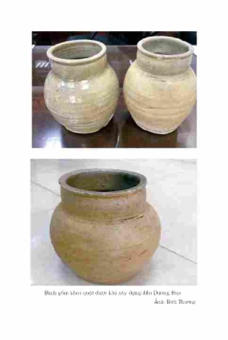 Bình gốm khai quật được khi xây dựng đền Dương Huy Ảnh: Bích Thương
