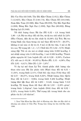 (Khe Chàm), đến độ tro lớn nhất là 32,98% (Lộ Trí). Độ tro