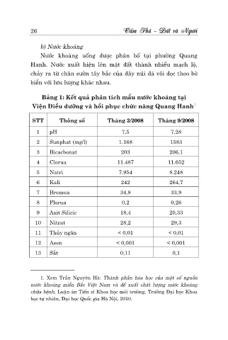 Bảng 1: Kết quả phân tích mẫu nước khoáng tại