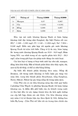 Br trong nước khoáng Quang Hanh cao 33,9 - 34,8 mg/l. Hàm