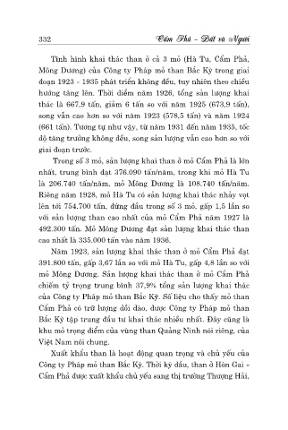 Năm 1923, sản lượng khai thác than ở mỏ Cẩm Phả đạt