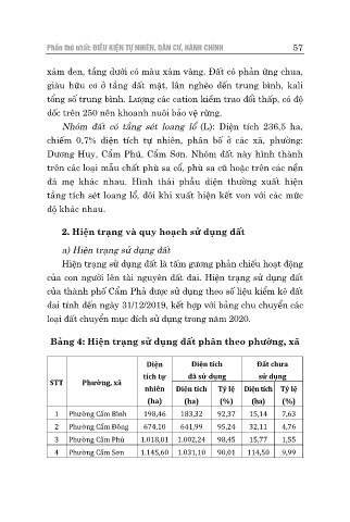 Bảng 4: Hiện trạng sử dụng đất phân theo phường, xã